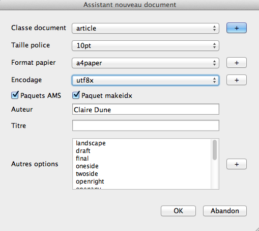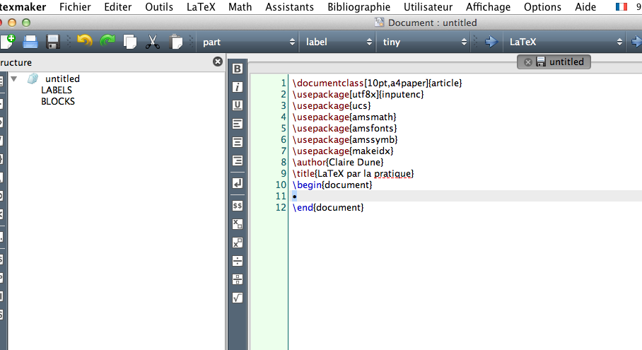 En utilisant l'assistant de TeXMaker, créez le document suivant.