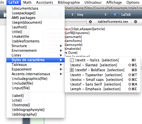 TexMaker peut vous aider à changer le style d'un bloc de texte en cas de trou de mémoire.