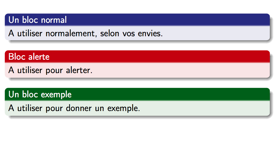 \begin{alertblock}{Bloc alerte} % Bloc alerte rouge